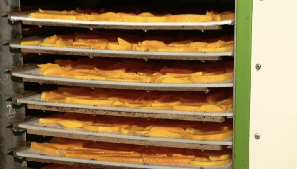 Mango Slices Undergoing Dehydration